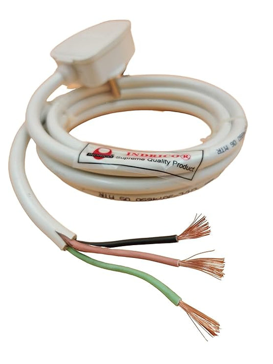 INDRICO 3 Pin Power Cable AC Extension Cord 3 Core Copper Heavy Duty Wire for Cooler Fan Refrigerator Fan and Other Home Appliances PVC White Pack of 1 ( 1.5 MM Cable )