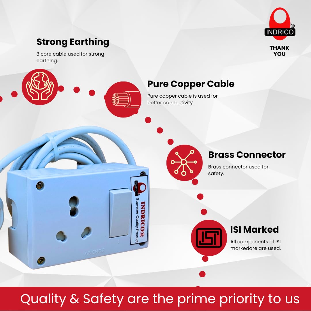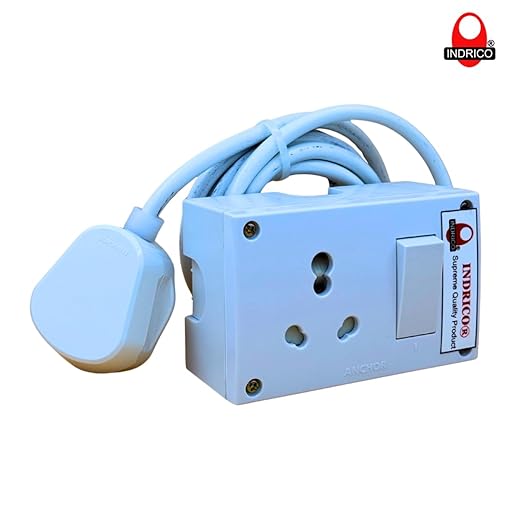 INDRICO® 20A Power Extension Board with 2 Meter Heavy Duty Wire for Microwave, Induction Cooker, Fridge, Washing Machine, 1 Ton A.C, Anchor Switch & Socket & Plug (White)