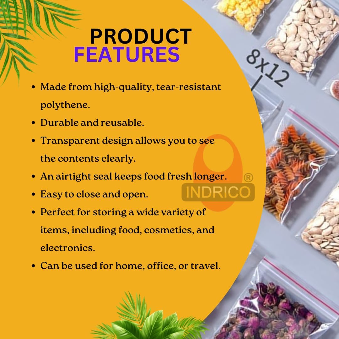 INDRICO Zip Lock Pouch Bags for Reusable Self-Seal Storage Transparent (12X16 Inch (50 PCS))